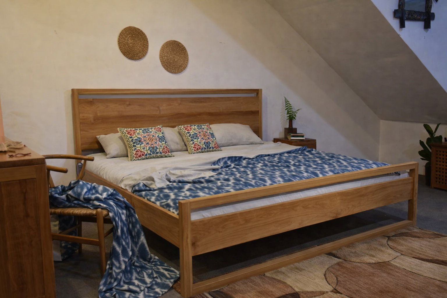 Where craftsmanship meets comfort in a timeless design. Crafted from premium teak wood, renowned for its durability and rich natural hues, this bed frame exudes sophistication and elegance. The sturdy construction ensures stability and longevity, promising a reliable centerpiece for your bedroom sanctuary.