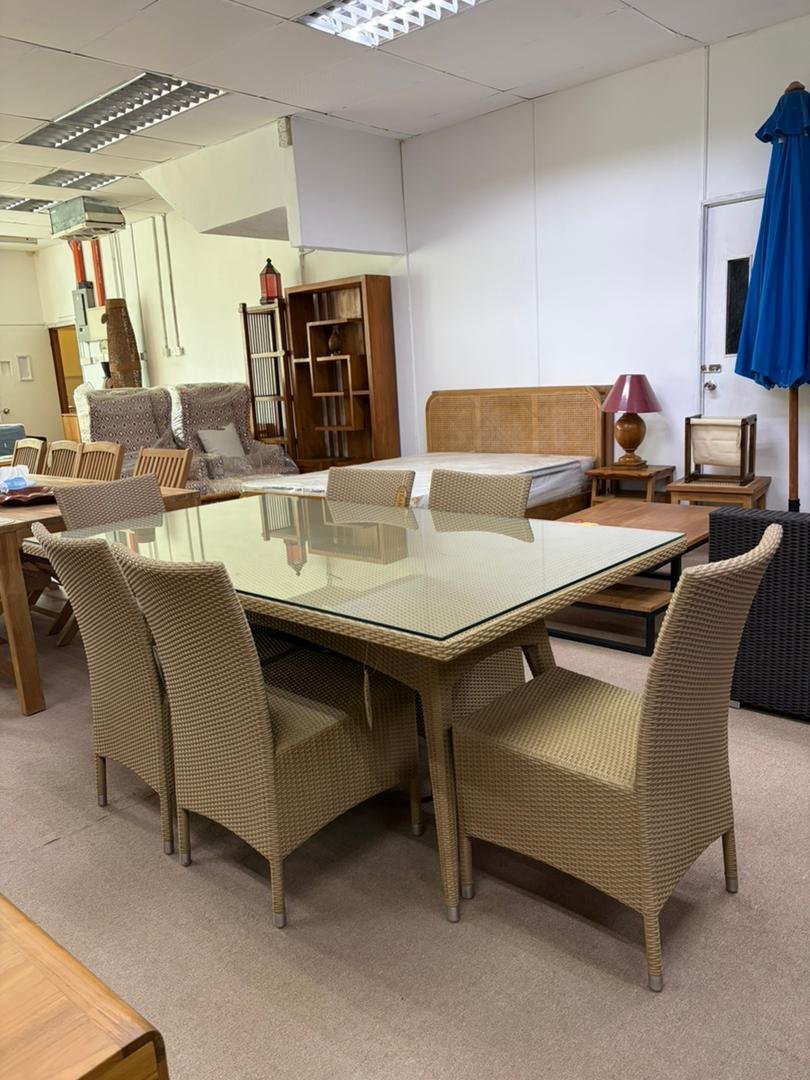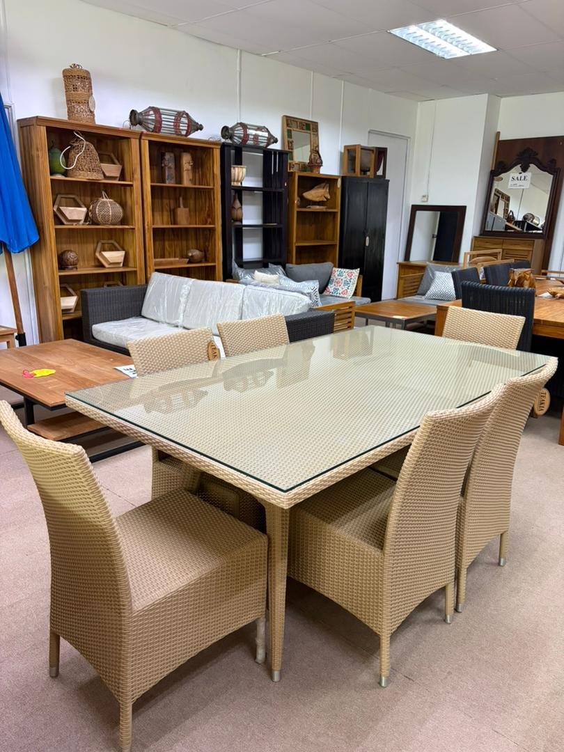 Wicker Dining Set 6 Seater + FREE Glass Top